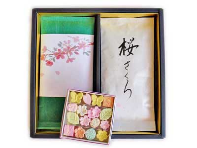 うららかな春にお茶でくつろぎのひと時・・・ 桜をイメージしたお茶「桜さくら」と香り高い煎茶の「四季折々」、 これに可愛らしい和三盆糖のお菓子「春の琴」をセットにて 桜の詰め合わせを作りました。 「桜さくら」は桜をイメージしたお茶でほんのりとした甘みが特徴です。 入学の内祝いや季節のご挨拶にいかがでしょうか♪