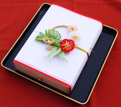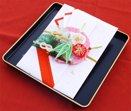 みつあみ結納金封と黒塗り盆のセット\4,500(税別)