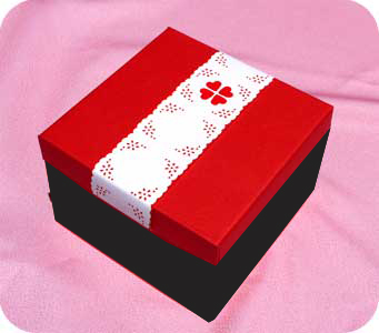ふたは、花嫁のベールの様なレース模様に幸せの四つ葉のクローバーを